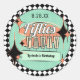 Fifties Party Stickers features mid-century modern sign style typography of "Fifties Party''. This design includes elements of mint green, orange, black and white, chequered pattern, polka dot background, retro shapes, stars and designs inspired by the 50's. Include a template for personal customization.