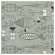 Mid-Century Fish Art Black White Green Fabric