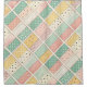 A seamless geometric pattern shower curtain featuring a playful blend of polka dots, stripes, and plaid grids arranged in diamond formations. Rendered in a warm retro palette of mustard yellow, terracotta, mint green, blush, and cream, this design evokes mid-century charm with a modern twist. The mix of hand-drawn lines and dotted textures gives it a cozy, artisanal look.
