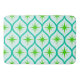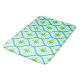 This is elegant mid century modern lime green atomic starbursts pattern on teal ovals ogee shapes. It's great looking bath mat for anyone who love retro atomic age designs.