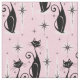 For the cat loving retro enthusiast, my original vector illustration of sleek black cats, starbursts, & diamonds in mid century atomic style, in black and pale pink on a cool pink background, with simulated fabric grain.