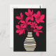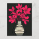 A bright fuchsia bouquet dances in a black-striped vase on a zesty yellow background—high-energy and eye-catching.