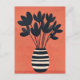 Coral blooms with navy vase detail shine against a crisp pistachio green base—clean, cheerful, and stylishly vintage.