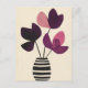 Rich plum petals rise in a cream-striped vase with thick outlines on a delicate yellow chiffon background—soft yet graphic.
