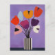 A rich violet bloom with soft sky-blue vase stripes creates a modernist floral on warm taupe for cozy contrast.