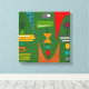 Mid-Century Modern Wrapped Canvas, colourful funky abstract squares and moon shapes in shades of orange, gold,  avocado and teal and grey.  A perfect addition to your mid century style.