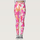 Leggings in a Mid-Century Modern abstract, geometric, composition in fuchsia pink, coral orange and coral pink, with a white background