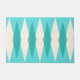 This Mid Century Modern Argyle Door Mat features a vibrant, turquoise background and a pattern of mod, translucent teal diamonds overlaying larger, vintage cream diamonds with gold coloured, space age speckles. This minimalist inspired, deconstructed argyle is a simplistic throwback of the larger than life atomic era that dominated the decorating landscape of the 1950s and 1960s. This kitschy design is reminiscent of everything from retro Palm Springs’ bowling alley signs to the television trays you used at your grandma’s house.