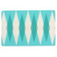 This Mid Century Modern Argyle Floor Mat features a vibrant, turquoise background and a pattern of mod, translucent teal diamonds overlaying larger, vintage cream diamonds with gold coloured, space age speckles. This minimalist inspired, deconstructed argyle is a simplistic throwback of the larger than life atomic era that dominated the decorating landscape of the 1950s and 1960s. This kitschy design is reminiscent of everything from retro Palm Springs’ bowling alley signs to the television trays you used at your grandma’s house.