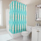 This Mid Century Modern Argyle Shower Curtain (vertical medium print) features a vibrant, turquoise background and a pattern of mod, translucent teal diamonds overlaying larger, vintage cream diamonds with gold coloured, space age speckles. This minimalist inspired, deconstructed argyle is a simplistic throwback of the larger than life atomic era that dominated the decorating landscape of the 1950s and 1960s. This kitschy design is reminiscent of everything from retro Palm Springs’ bowling alley signs to the television trays you used at your grandma’s house.