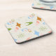 This set of 6 coasters with cork backing features a mid century modern atomic pattern with boomerangs, diamonds, rectangles in lime green, caramel brown, peach, pink and blue for that retro look.