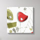 Mid-Century Modern Wrapped Canvas, atomic, kinectic mobiles in colours of red, green and grey. A mid-century inspired art piece signed by artist Gail Gabel, mid-century inspired graphic designer and artist.