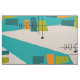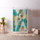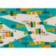 Mid-Century Modern atomic fabric inspired abstract in teal, orange and green.