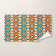 Mid-Century modern bathroom towel. Circle pattern. Colours red, brown, turquoise and yellow.