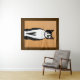 Tapestry in An illustration of a Mid-Century Modern inspired, black and white cat with a little bit of an attitude, on a mustard gold background