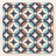 This mid-century modern pattern features blue and brown shapes.