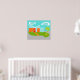 This Mid Century Modern Cartoon House Poster will have you wanting to put out the WELCOME mat and make yourself at home! The 1960's, minimalist art design features a sleek, orange stone and aqua glass house on a lush, green, boomerang shaped lawn. The lawn forms an oasis in the middle of its grey, concrete surroundings. A green palm tree is swaying in the breeze. Four, orange stepping stones lead the way to the retro, red, front door with three, rectangular, glass window panes. To the left of the door, a turquoise flowerpot holds a tropical, green plant. The house has a sloping, V shaped white roof that is pointing toward two, white, kidney bean shaped clouds. The sky is a positively serene shade of aqua. No one will want to throw stones from this modern, glass house design! Buy this kitschy, space age product and be the coolest cat on your block!