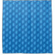 Shower curtain in a Mid-Century Modern, retro cat design, in an abstract ribbon pattern - light and medium sky blue, outlined in dark navy blue, on a medium cobalt blue background