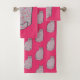 Mid-Century Modern Cat, Grey and Fuchsia Pink Bath Towel Set