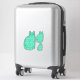 Sticker of a Mid-Century Modern, retro cat design, in an abstract ribbon pattern - mint, lime green, aqua and turquoise, outlined in dark teal