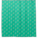 Shower curtain in a Mid-Century Modern, retro cat design, in an abstract ribbon pattern - mint, lime green, aqua and turquoise, outlined in dark teal, on a medium mint green / peacock green background