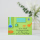 This Mid Century Modern Change of Address Postcard will have you breaking out your strands of pearls to do the most mundane tasks. The design features a lime green background with the silhouette of a blue, cone fireplace, a green, classic tube television set (complete with rabbit ears), an orange lounge chair and footstool, a blue, starburst clock, and an orange ottoman with tapered legs. Simply click on the "Customize It" icon to replace the existing text with your own. It will be a cinch for a mod, computer savvy person such as yourself! Home Sweet Home just got a whole lot sweeter!