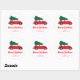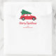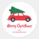 Mid Century Modern Christmas Tree & Red Car Classic Round Sticker