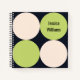A stylish spiral-bound notebook with mid-century modern circles design on the cover. The circles are pink and green on a blue-black background, giving a bold and simple look. Personalize with the recipient's name for the finishing touch.