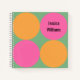 A stylish spiral-bound notebook with mid-century modern circles design on the cover. The circles are pink and orange on a sage green background, giving a retro cool effect. Personalize with the recipient's name for the finishing touch.