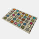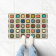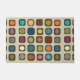 A retro 1950s style abstract art pattern with bright and colourful buttons inside of squares.