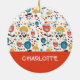 Mid Century Modern Colourful Floral Custom Name Ceramic Ornament