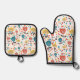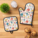 Mid Century Modern Colourful Floral Pattern Oven Mitt & Pot Holder Set