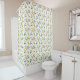 This fabulous mid century modern shower curtain features geometric corners and rectangles in the colours of turquoise blue, orange, tan, avocado green, and blue. This will make a splash of colour in your bathroom!