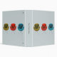 The Swan and the Egg chairs were both originally designed by Arne Jacobsen in 1958 for the lobby and lounge areas in the Royal Hotel in Copenhagen and became a mid-century modern classic look. Design depicts a set of three chairs in avocado green, poppy red and aqua teal blue with stainless steel legs on muted silver background.
