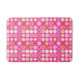 Mid-century Modern graphic design bath mat - large, retro bordered dots in warm pastels on deep, fuchsia pink