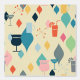 Mid Century Modern pattern of cocktails, starbursts and diamonds done in a 1950's palette of cream, turquoise and orange.