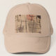 This Mid Century Modern Abstract Fabric Trucker Hat feature a replica of a vintage 1950's fabric. The background is ecru with black and gold lines. The fabric also features grey and pink modern art shapes. It's a blast from the past! This is the perfect design for anyone who loves items with a retro feel.