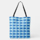 Mid-Century Modern design print bag of stylized fish, alternating positive and negative space - mixed media graphic in cobalt blue and white, accented with sky blue and aqua
