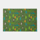 Mid-Century modern geometric abstract in green. Geometric shapes doormat in colours of the time period on a green background.