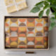 Retro Mid Century Geometric Half Square and Circle Pattern Brown Orange & Yellow.
