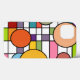 This phone case has a mid-century modern design of a grid with some rectangles coloured in and circles on top in retro colours.