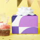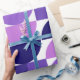 This wrapping paper has a mid-century modern design of quarter and half circles in shades of purple.