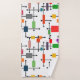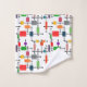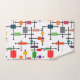 This towel set has a mid-century modern design of a large grid of horizontal and vertical black lines with colourful rectangles.