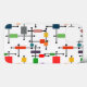 This phone case has a mid-century modern design of a large grid of horizontal and vertical black lines with colourful rectangles.