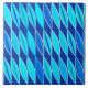 Tile in a Mid-Century Modern design of abstract leaves in shades of cerulean and sky blue, accented with white, on a deep cobalt blue background