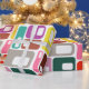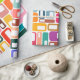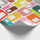 This wrapping paper has a mid-century modern design of rectangles with a white hole in retro colours.