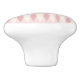 This Mid Century Modern Pink Argyle Ceramic Knob features a First Lady pink background and a pattern of mod, translucent, blush diamonds overlaying larger, vintage cream diamonds with gold coloured, space age speckles. This minimalist inspired, deconstructed argyle is a simplistic throwback of the larger than life atomic era that dominated the decorating landscape of the 1950s and 1960s. This kitschy design is reminiscent of everything from retro Palm Springs’ bowling alley signs to classic TV shows to the television trays you used at your grandma’s house.