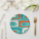 Mid-century Modern Piquet Pattern Teal Orange Paper Plate