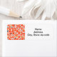 These return address labels have a design of orange rectangles with circles in them in different shades of green and blue.