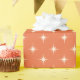 Mid century modern wrapping paper features atomic star pattern in retro rust orange. The cute starburst is a cool midcentury classic.